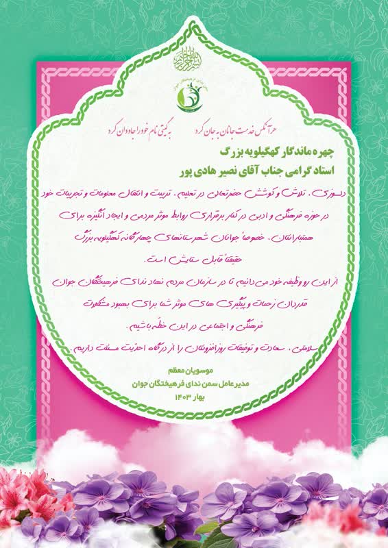 در سالروز ولادت امام حسن مجتبی(ع) سازمان مردم نهاد ندای فرهیختگان جوان به معرفی شش نفر از شخصیتهای بی نظیر و ماندگار کهگیلویه بزرگ پرداخت.
